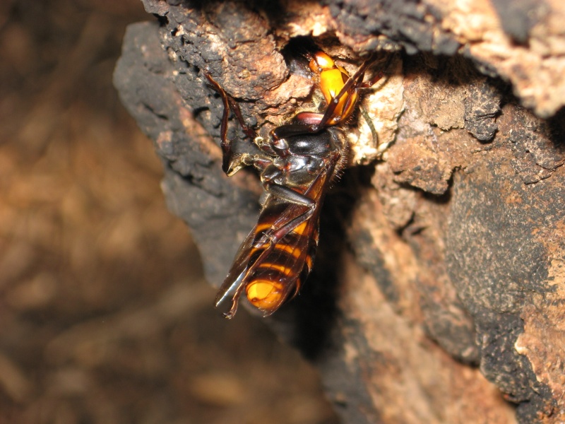 樹液に夢中で足が木から離れてます。